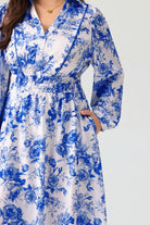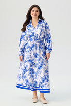 Floral Print Shirt Collar Long Sleeve Maxi Dress