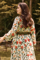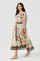 Ritera Elegant Boho Floral Midi Dress with Reversible Belt