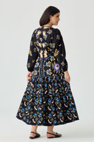 Ritera Pockets Boho Folkloric Floral Print Smocked Waist Midi Dress
