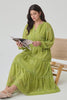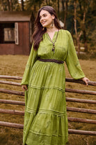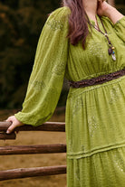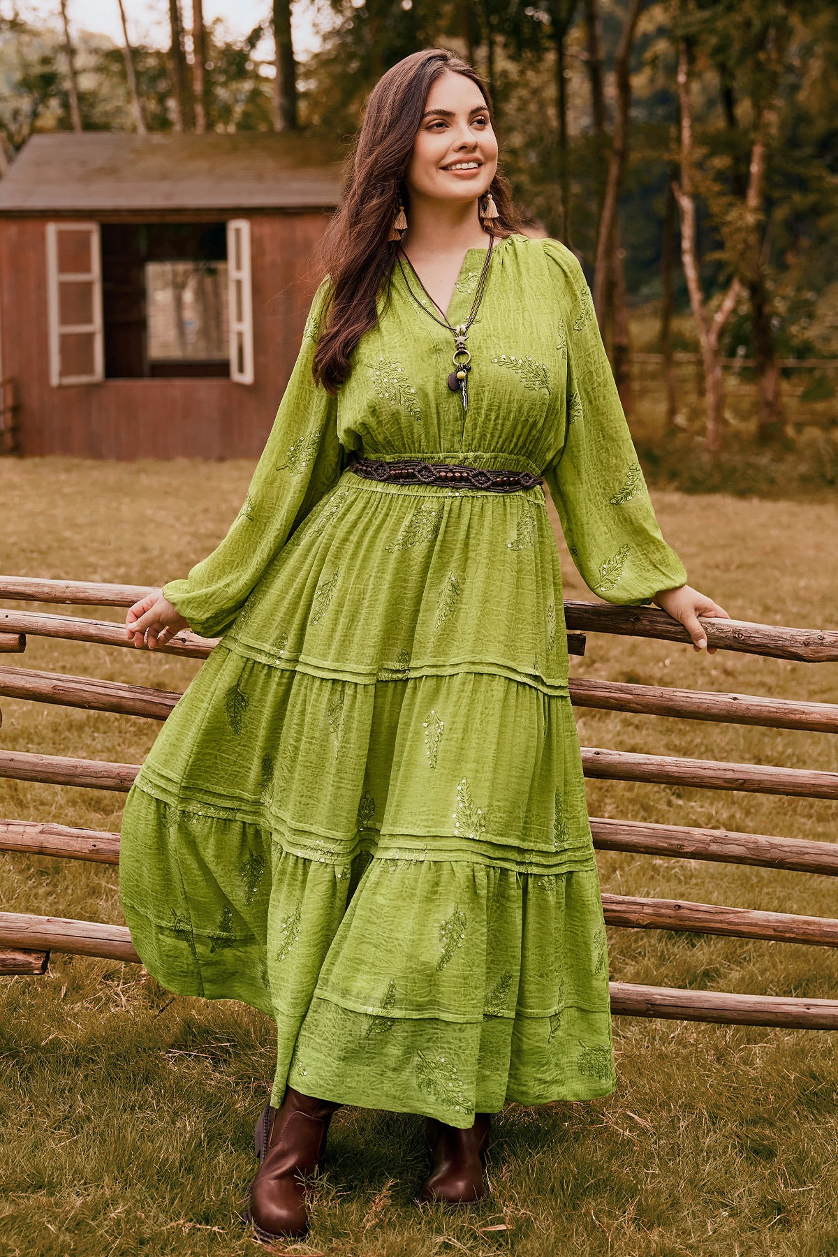 Sequin Embroidery Leaves Smocked Waist Tiered Midi Dress