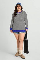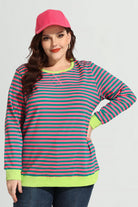 Sweat-shirt à manches longues élastique à rayures et patchwork Ritera