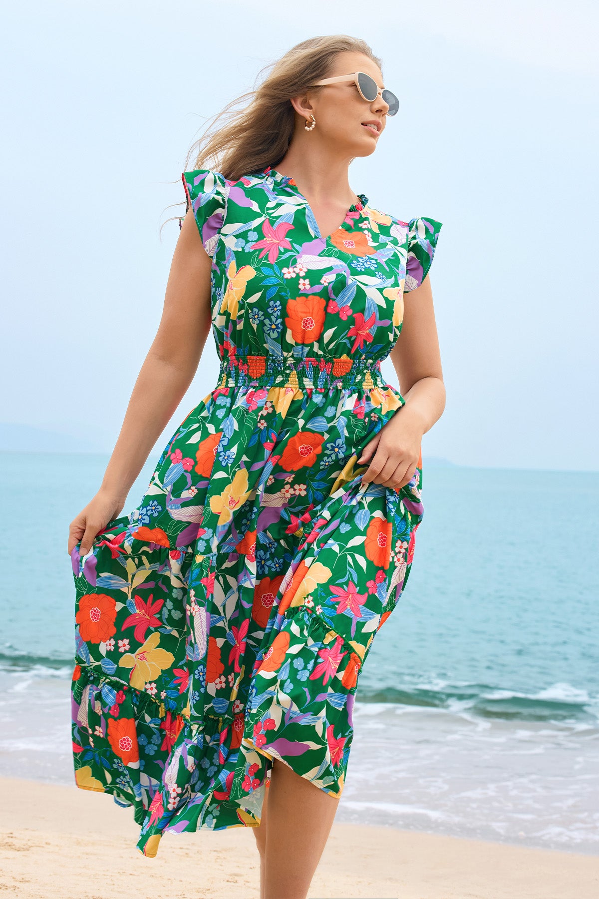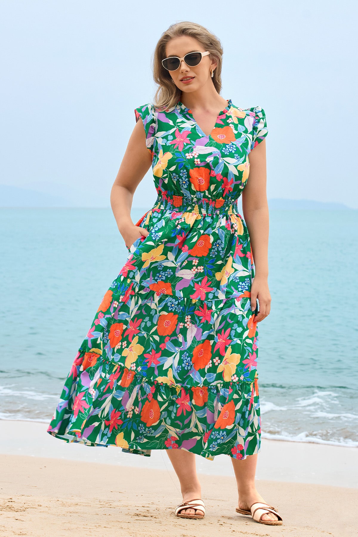 Robe Ritera à rayures arc-en-ciel, col en V, longueur genou
