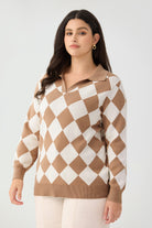 Embrace the timeless "Old Money Aesthetic" with our Classic Argyle Polo Sweater. This sophisticated knit pullover is the perfect blend of vintage charm and modern comfort. The iconic tan and ivory argyle pattern creates a refined, preppy look that never goes out of style, making it a true wardrobe staple.