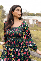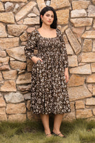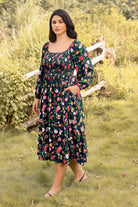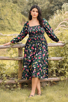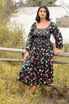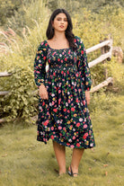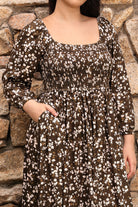 Ritera Pockets Chic Floral Smocked Square Neck Midi Dress