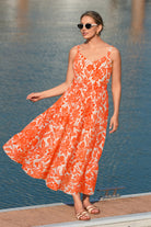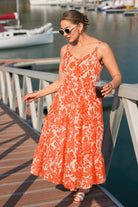 Bright Floral Print Smocked Cami Midi Dress