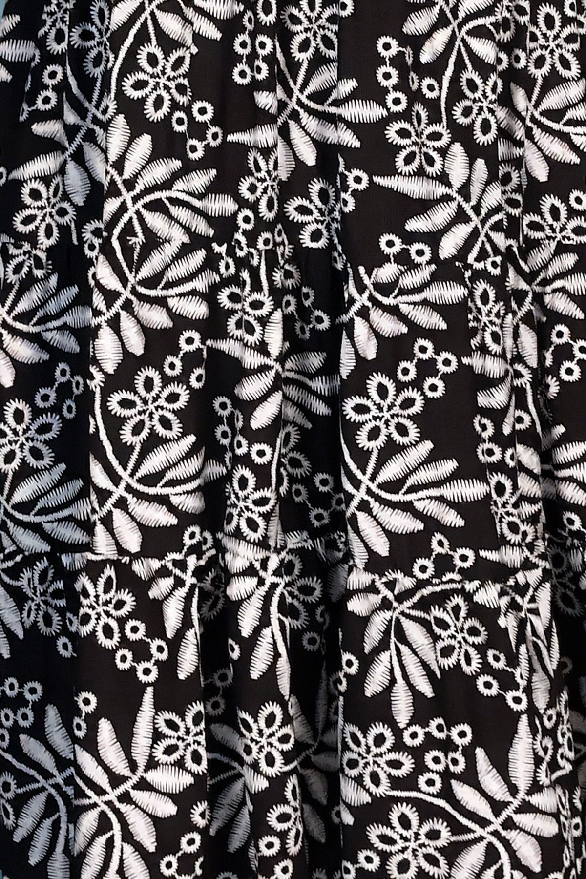 Robe mi-longue boutonnée à fleurs et broderies Ritera