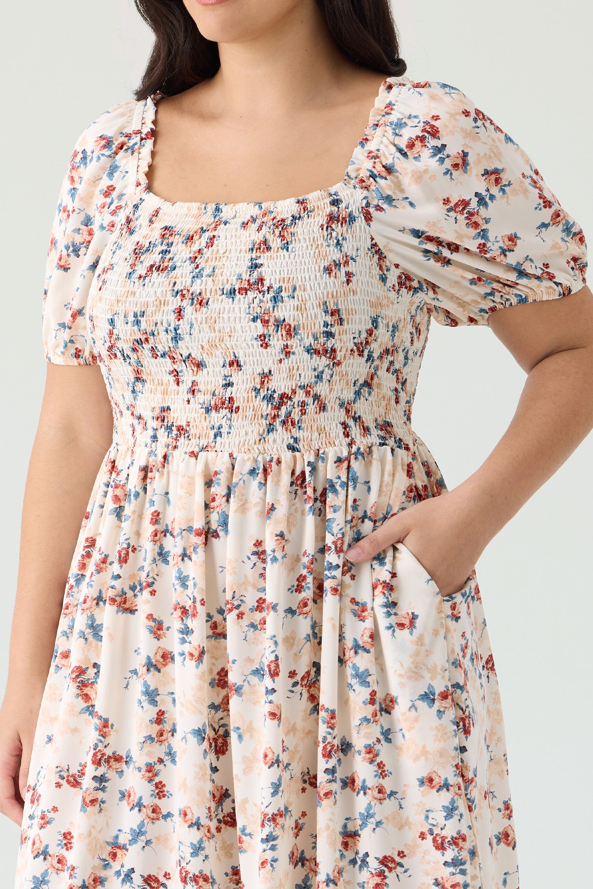 Ritera Pocket Boho Pastel Floral Smocked Tiered Midi Dress