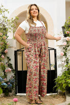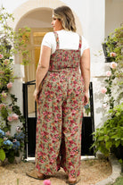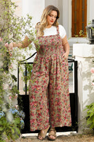 Ritera Pockets Floral Button Detail Strap Wide Leg Jumpsuits