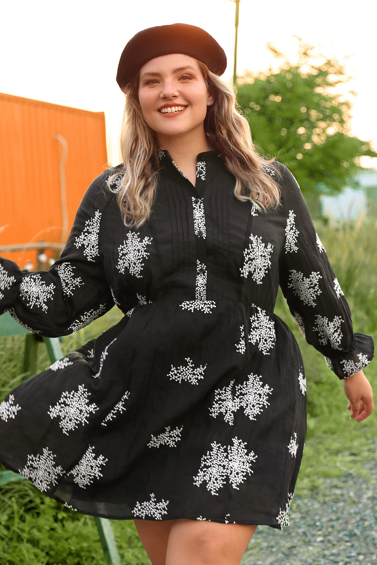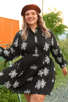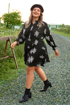 Snowflake Print Split Neck Button Down Mini Dress