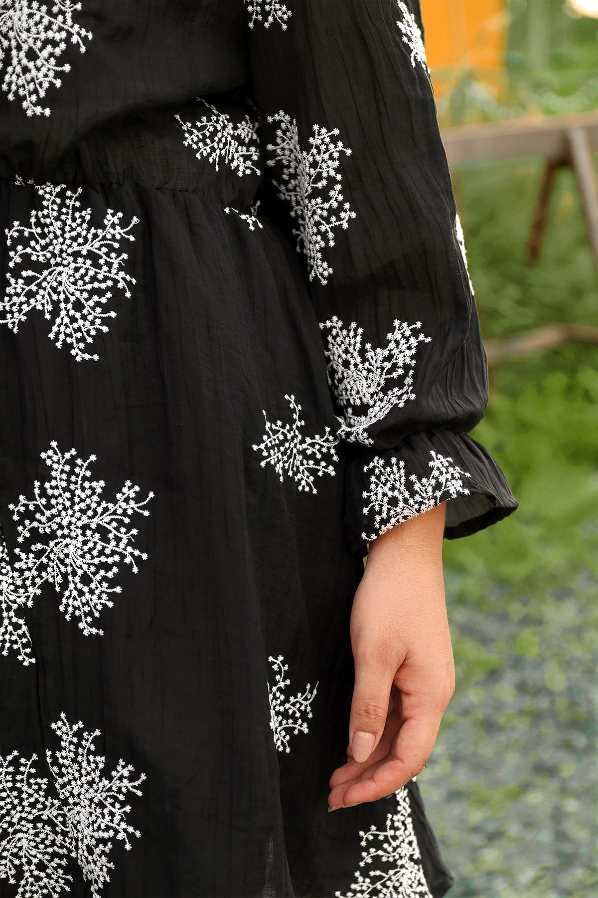Details: Flowy Hem, Elastic Waist, Ruffle Sleeves