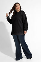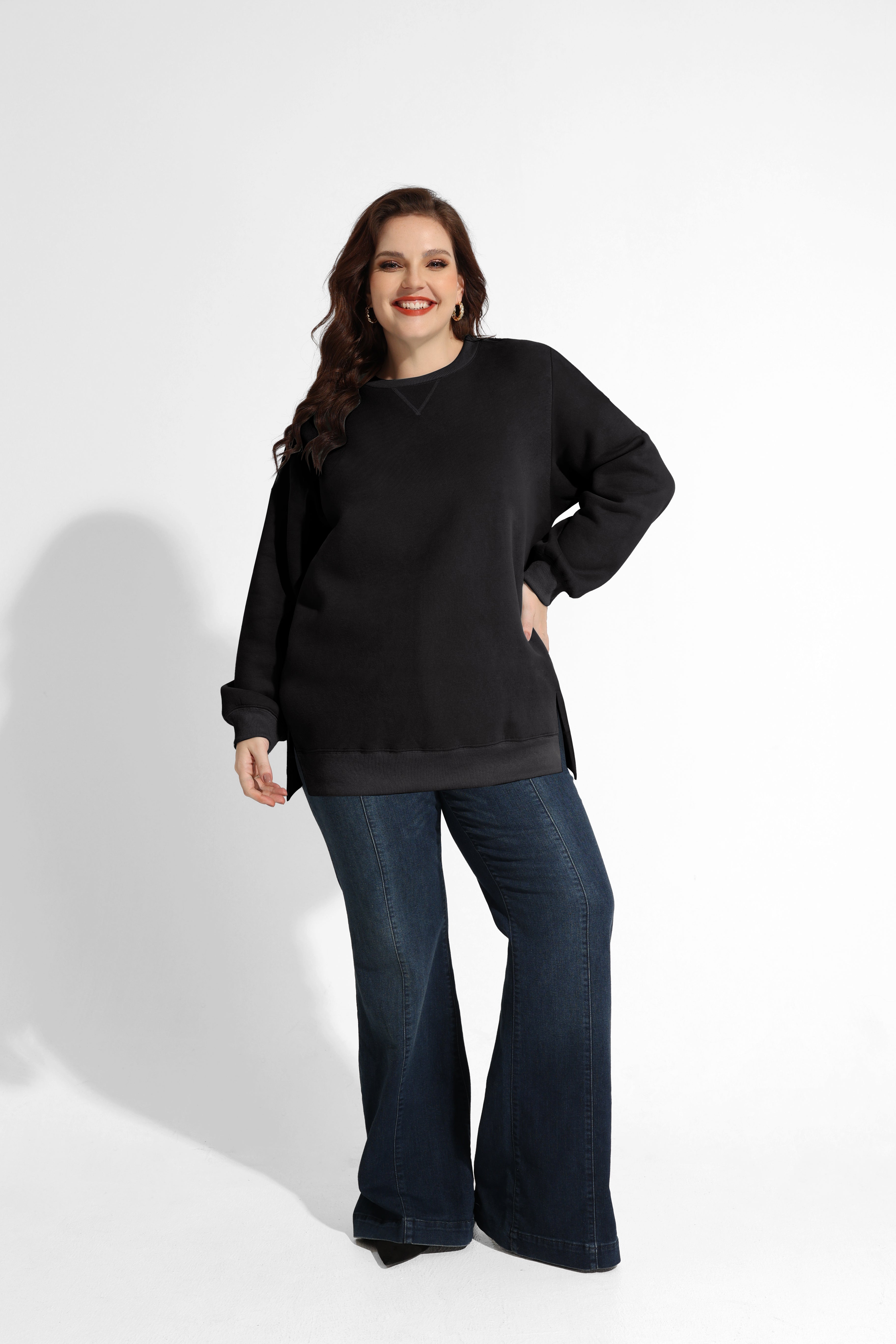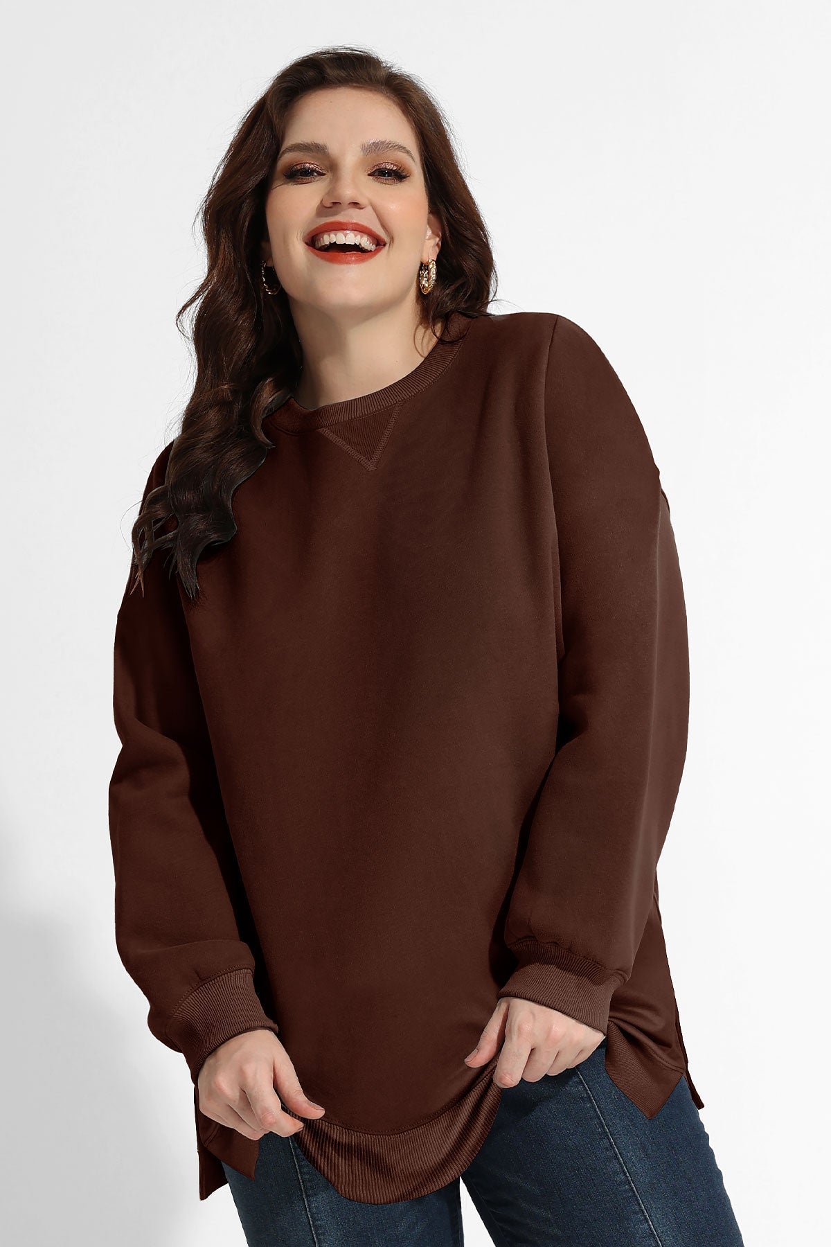 Solid Split Hem Long Sleeve Basic Sweatshirt