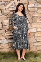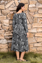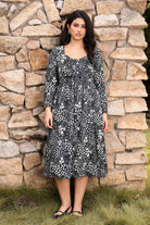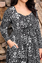 Vintage inspired Floral Print Sweetheart Neck Long Sleeve Midi Dress
